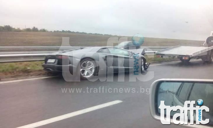 Лъскав автомобил с марка „Ламборгини“ се размаза в мантинелата на автомагистрала „Тракия“ в посока София. Инцидентът е станал днес около обяд. Най-вероятната причина за катастрофата е високата скорост, с която е бил забелязан да кара шофьорът преди инцидента, съобщава TrafficNews.bg. Мократа настилка също е спомогнала и е възможно да се е образувал аквапланинг.