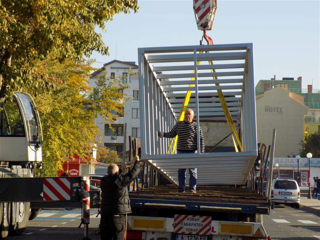 Дейностите по проекта вече започнаха, като на югозападната фасада на Общината бе монтирана тежката метална конструкция – тяло на асансьора. Предвижда се той да бъде панорамен тип, с четири спирки, без машинно помещение.