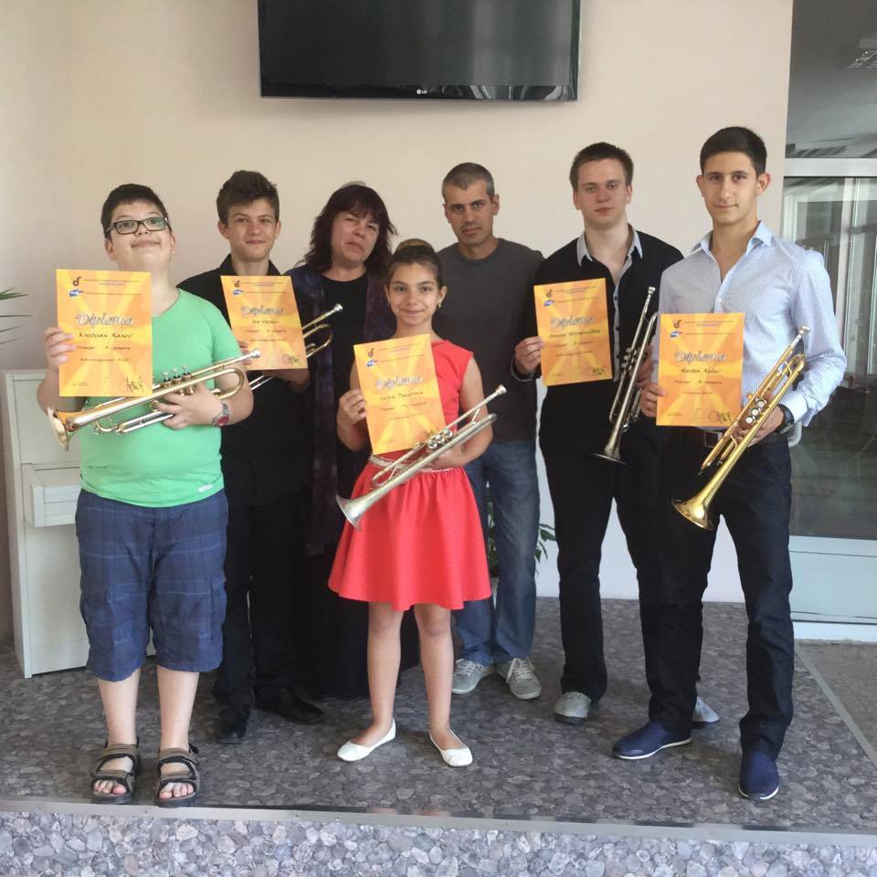 30 тромпетисти се надпреварваха за престижните отличия, сред които бяха и бургаските представители. Призови отличия завоюваха Галя Димитрова от 5 клас – Втора награда, Мартин Колев 12 клас – Трета награда, Арсений Новодержкин 10 клас – поощрение