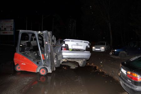 Установено е, че движещият се „Форд“ е бил пронизан с „вилиците“ на мотокара в областта на задното ляво стъкло, страничната колонка и предната лява врата, без да бъдат причинени наранявания на водача. По аналогичен начин е пронизан и минаващия по пътя Бургас – Варна лек автомобил „БМВ“, като дясната „вилица“ проникнала в областта на задния ляв калник под багажника, а лявата – счупила стъклото на задната лява врата, пронизвайки и задната седалка, като автомобилът е останал с вдигната задна част на около 40 см. от пътната настилка.
