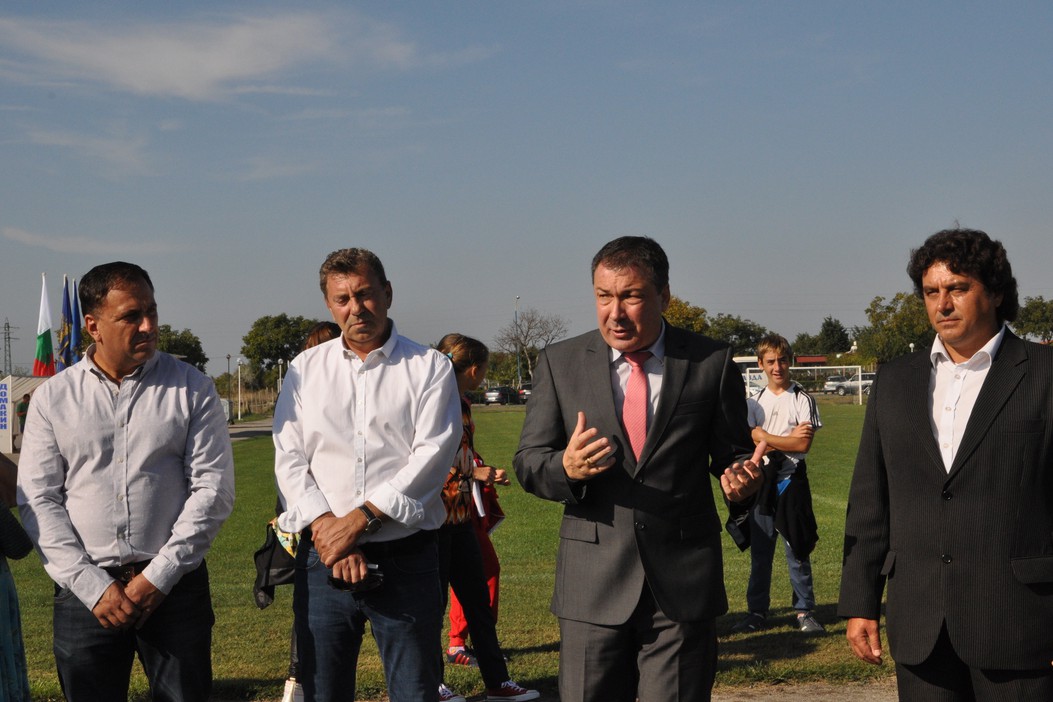 „До сега сме работили като един отбор. Вярвам, че и занапред ще ни бъде гласувано доверие и ще работим по същия начин за просперитета и развитието на нашето населено място.“, сподели кметът на Радва Андон Бакалов. Той благодари на кмета на община Несебър, на Общинска администрация и на Общински съвет за реализирането на четирите придобивки в селото.Той подчерта, че в Равда условията за практикуване на футбол, които предоставят стадиона като цяло, са на високо ниво и доказателство за това са посещенията на отбори от цялата страна, които идват тук и провеждат своите тренировки. Той подчерта, че не малко турнири по футбол се реализират в Равда, а през месец май тази година селото бе домакин на тренировките на юношеските отбори на Ирландия и Чехия в рамките на Европейското по футбол за младежи. Кметът Андон Бакалов допълни, че мини футболните игрища, както и голямото, в непосредствена близост, са снабдени с поливни системи, за които отправи специални благодарности на Димитър Козарев и неговата фирма, която ги е изградила.
