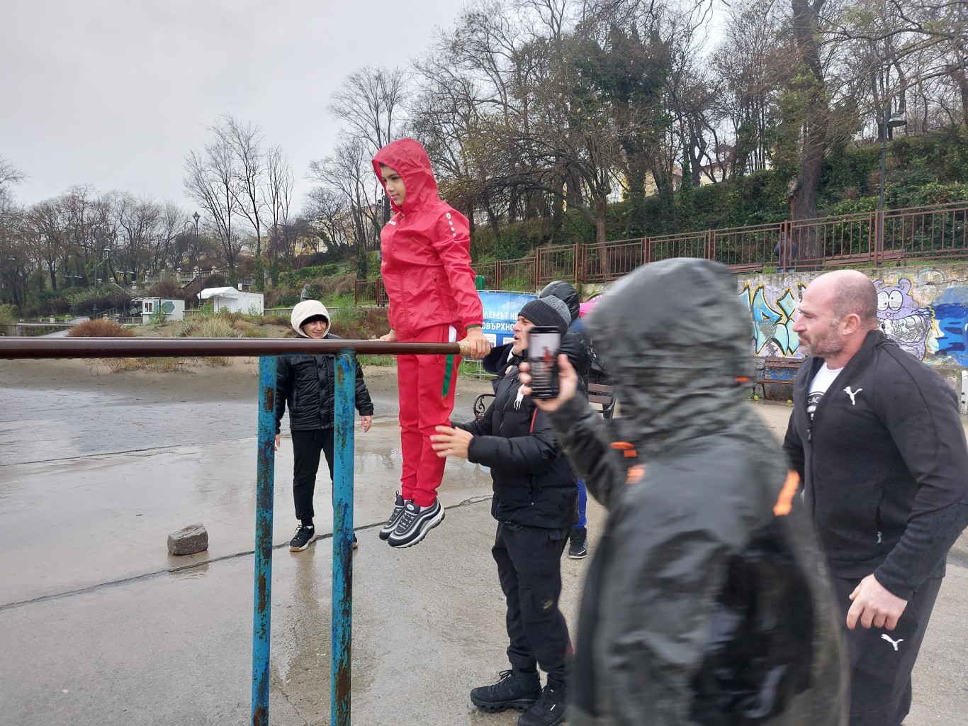 Истинско желание за тренировка с любим спортист демонстрира 12-годишният Гриша Колев. Момчето е вицешампион по акробатика, а дъждът не го спря да се включи в тренировката, която Йордан Йовчев проведе на открития фитнес до ресторант „Нептун“.