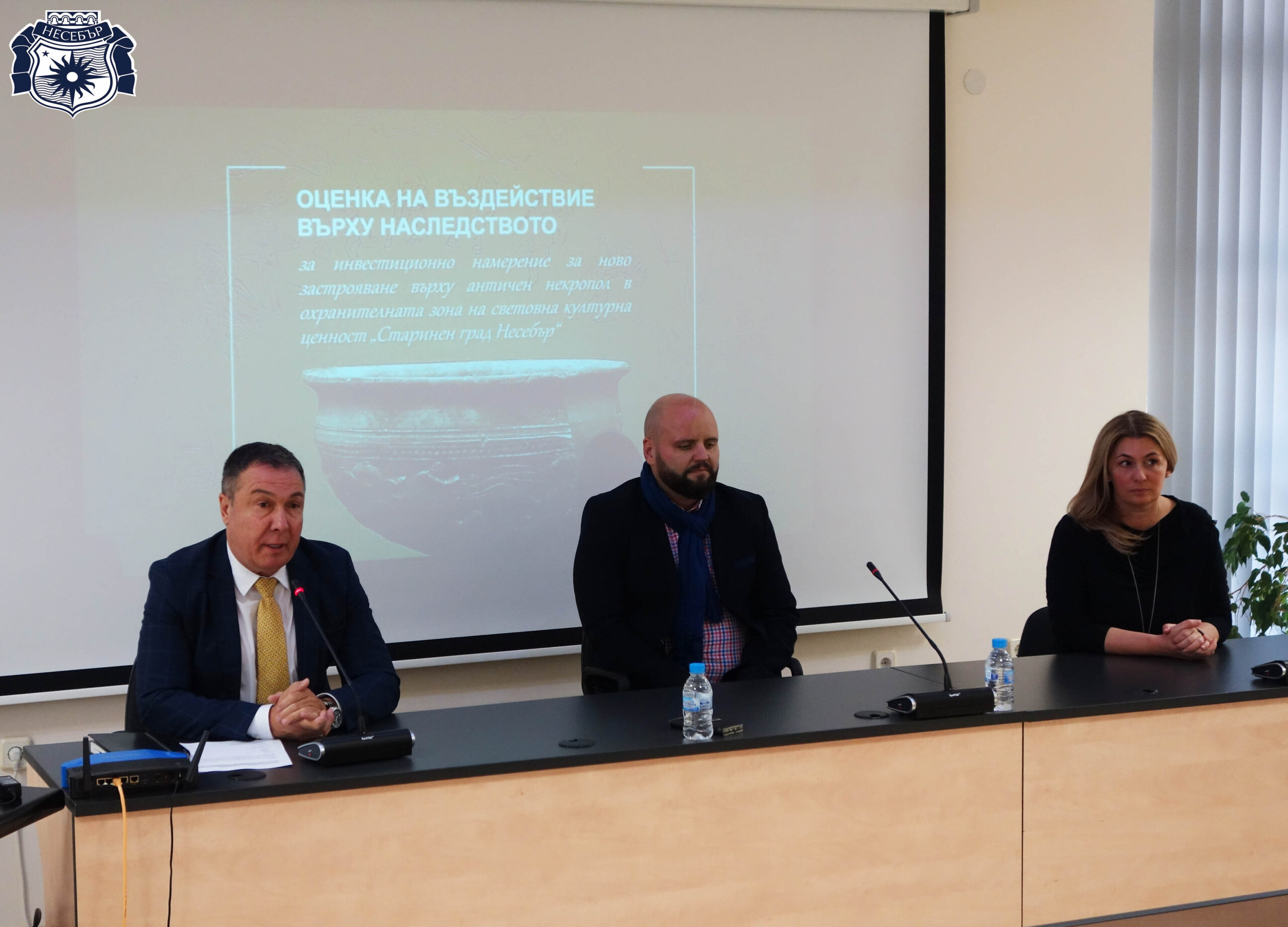 Данните бяха изнесени на обществено обсъждане в зала “Мелсас“ с участие на кмета на община Несебър Николай Димитров, архитектите Крачанова и Тодоров, общински служители, граждани и представители на образователните и културни институции. На срещата бе представен анализът и резултатите на изготвена оценка за въздействие върху наследството във връзка с инвестиционно намерение за ново застрояване в терена на античния некропол в охранителната зона на световна културна ценност – „Старинен град Несебър”.