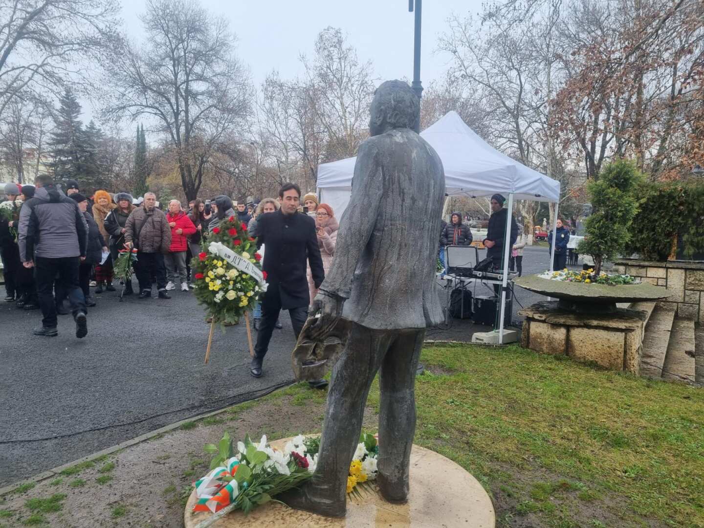 Десетки актьори положиха цветя пред паметника на Георги Калоянчев в Морската градина на Бургас по повод 100 години от рождението на големия български актьор. За да почете паметта му в града пристигна и председателят на Съюза на българските артисти Христо Мутафчиев, който припомни част от незабравимите роли на бургазлията, сред които и емблематичния образ на Бай Ганьо, пресъздаден от Калоянчев – Калата.