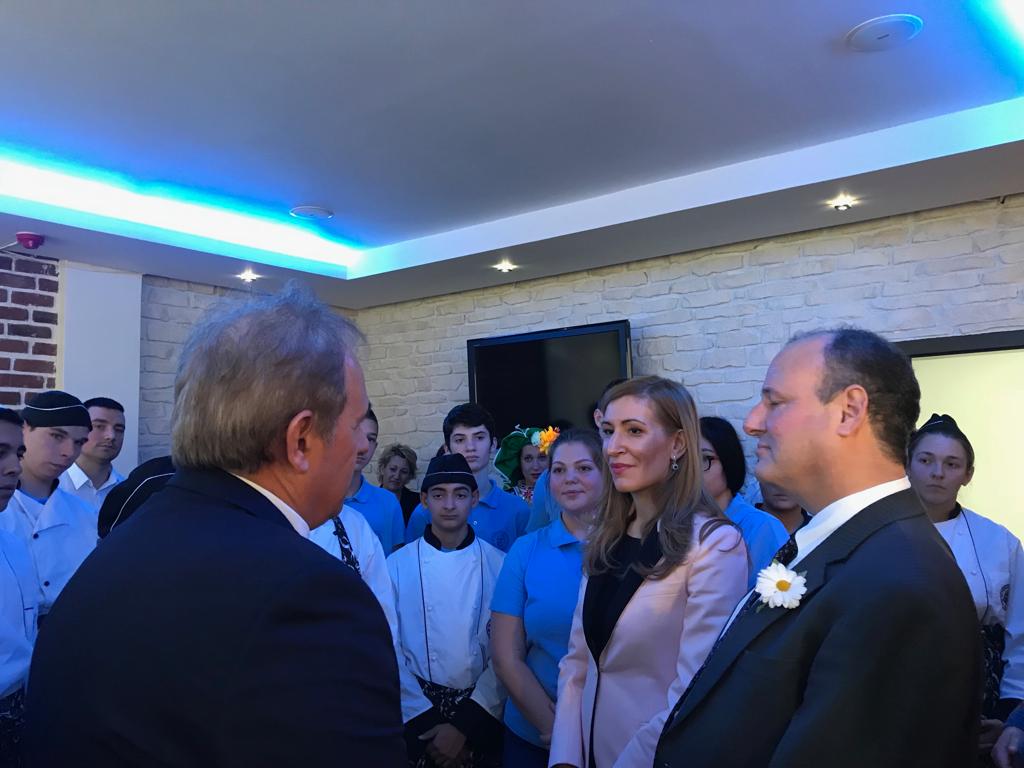Поздравявам ви за избора на професия и ви уверявам, че разчитаме на кадрите от професионалните гимназии по туризъм максимално да използват своя потенциал и да създават висококачествен продукт. Това заяви министърът на туризма Николина Ангелкова при посещението си в Професионалната гимназия по туризъм „Ив. Вазов“ в Слънчев бряг. Тя бе заедно с посланика на САЩ в България Ерик Рубин. Двамата разговаряха с преподавателския екип и възпитаници на училището, което тази година навършва половин век.
