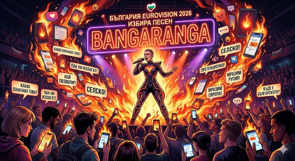 България избира песен за Евровизия 2026. Заглавието ѝ е „Bangaranga“. И в този момент интернет не просто реагира – той се самозапалва. „Какво означава това?“, „Пак ни излагат!“, „Кой позволи?“ – вместо някой просто да отвори търсачка и да провери за няколко секунди. Във време, в което изкуственият интелект може да ти напише дипломна работа, да ти изчисли ипотеката и да ти обясни квантова физика, ние избираме да използваме технологиите по най-емоционалния възможен начин – за моментално възмущение. Това не е липса на информация. Това е изобилие от гняв и тъпизъм едновременно.