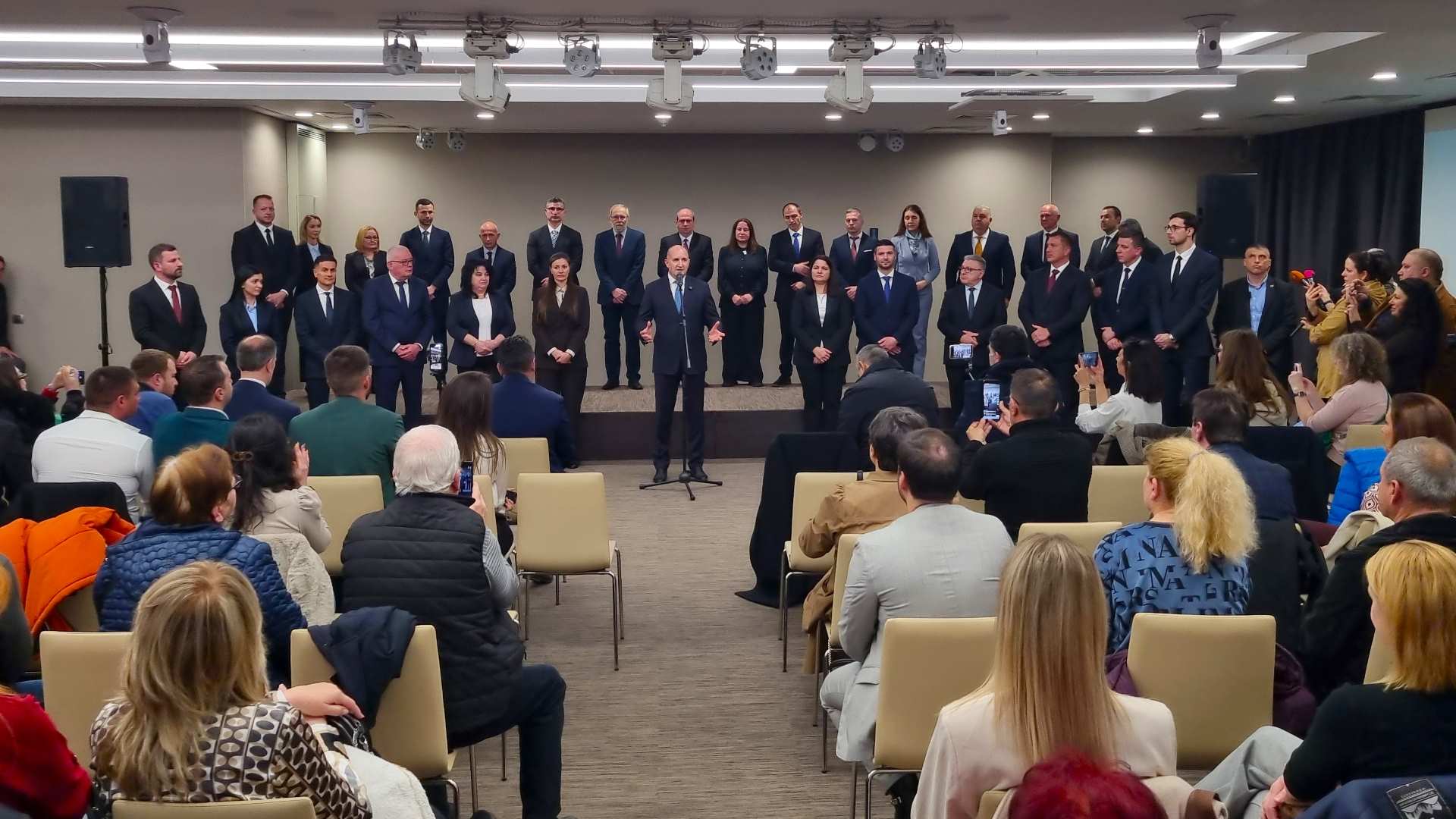 С бурни аплодисменти и препълнена зала беше посрещнат президентът Румен Радев, водач на листата на „Прогресивна България“ за Бургаски регион.