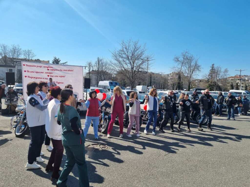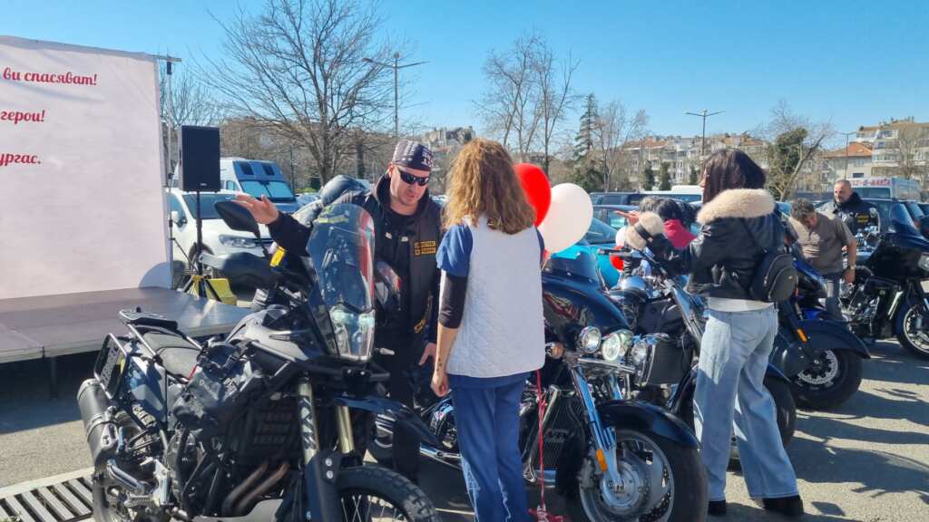 Деца от Музикалното училище в Бургас изнесоха концерт, гайдари огласиха пространството с български ритми, а мотористите от мотоклуб „Морски братя“ направиха почетна обиколка около сградата. Най-смелите пациенти се качиха на моторите и за миг замениха болничното ежедневие със свобода и адреналин.