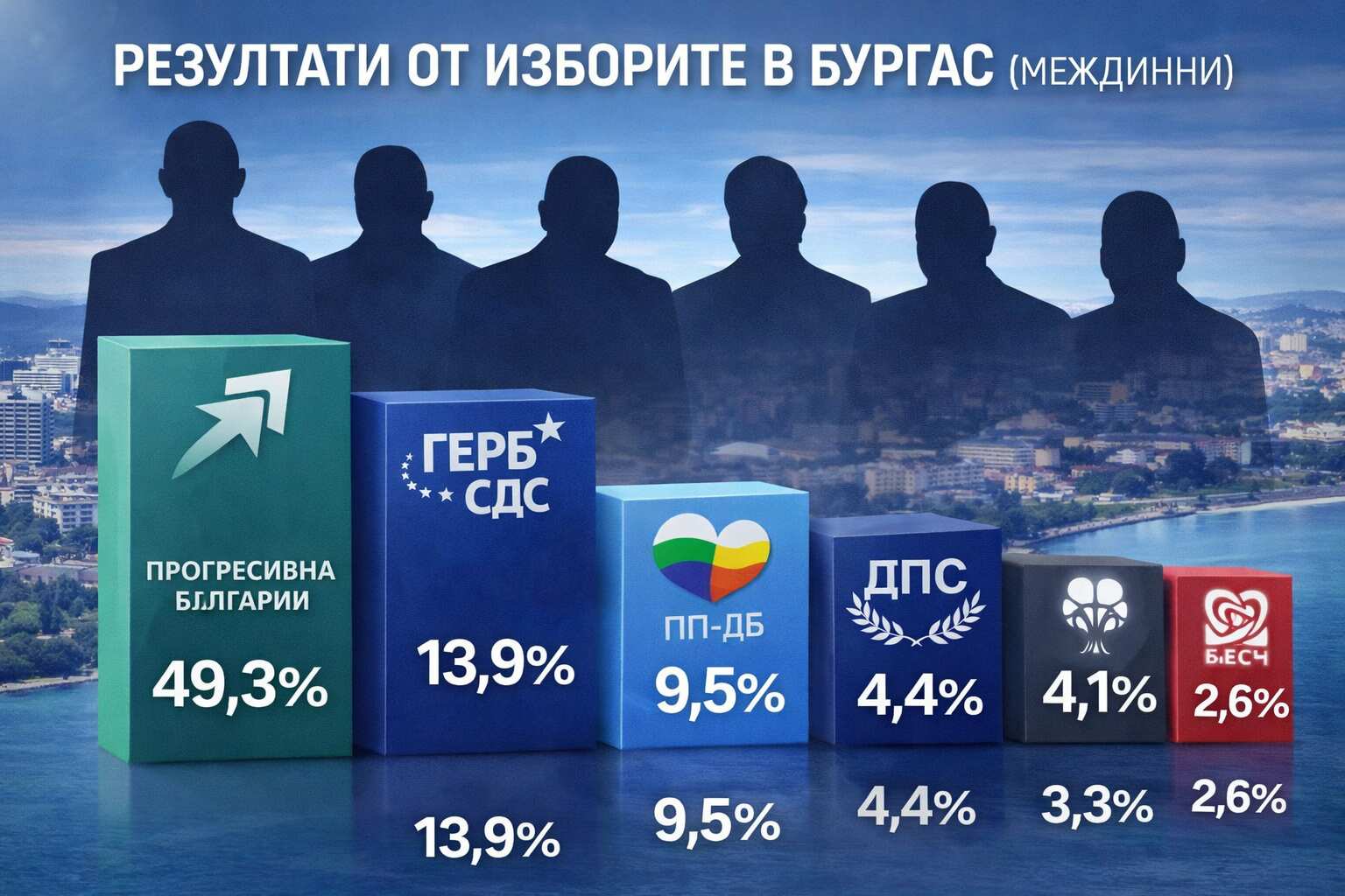 Бургас: „Прогресивна България“ взима близо 50%, ГЕРБ остава втори