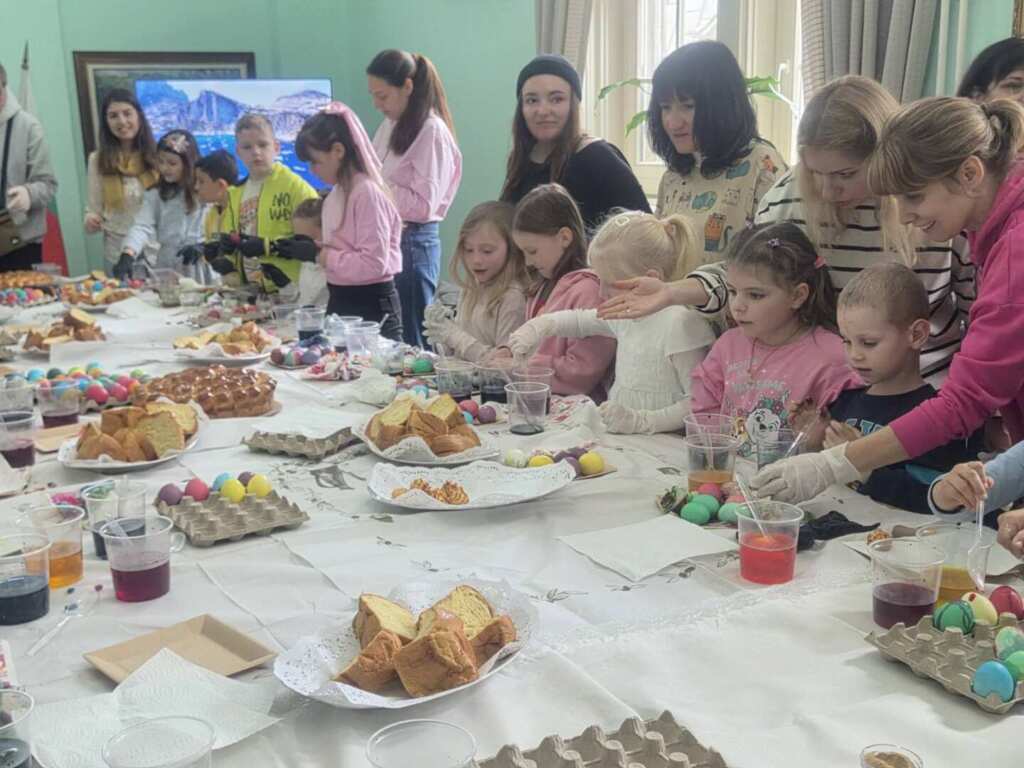 Децата от Неделното училище към храм „Св. Иван Рилски“ в Бургас боядисваха великденски яйца в импровизирана творческа работилница в Областна администрация Бургас