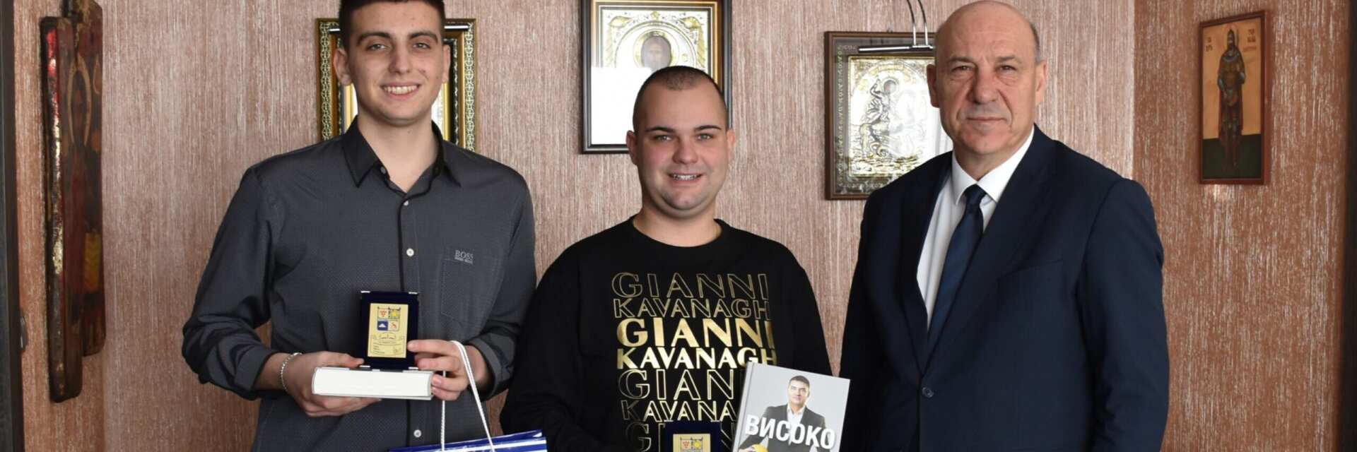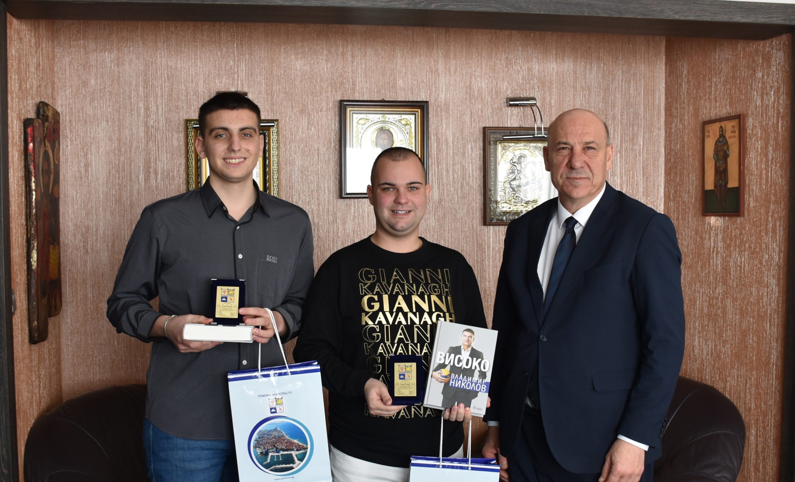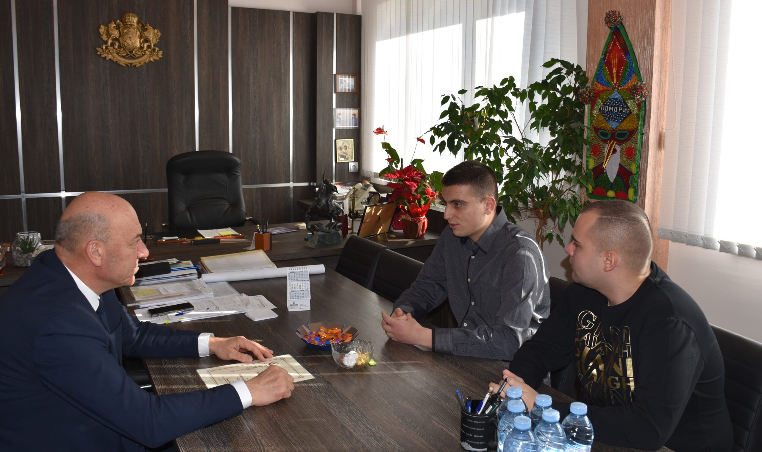Заради добрия пример и гордостта, която двете будни момчета носят на Поморие, кметът Иван Алексиев ги покани на среща.