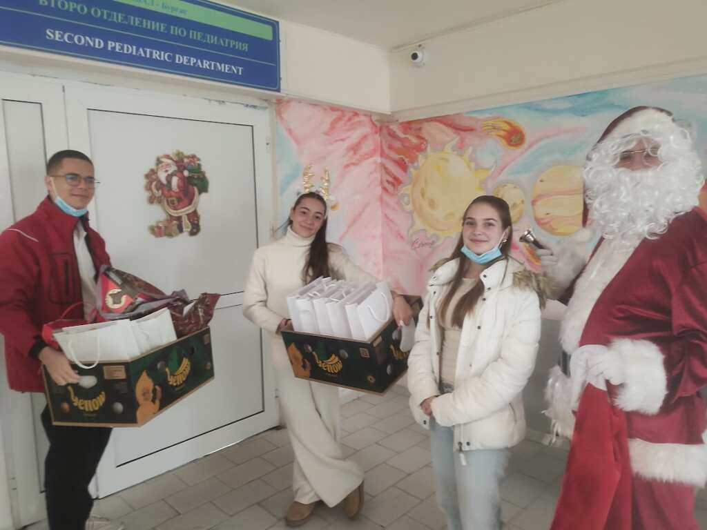 Дядо Коледа, придружаван от своите джуджета, донесе подаръци и усмивки на най-малките пациенти на УМБАЛ Бургас, както и на медицинския персонал, който се грижи за тях. В навечерието на празниците те посетиха двете детски отделения, в които се лекуват бебета и деца от 0 до 18-годишна възраст. Инициативата е на Българския младежки червен кръст в Бургас. Тя цели да подкрепи децата и техните семейства в един труден момент и да донесе празничния дух там, където е най-нужен.