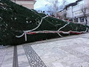 Коледната елха в центъра на Царево, чиято конструкция е близо 20-метрова се е срутила снощи на вероятно от ураганния вятър, чиито пориви на моменти достигат до 20 м/с, съобщи strandjanews.com. На потресаващата гледка са се натъкнали деца и възрастни днес сутринта, а тъжната снимка вече се разпостранява в социалната мрежа.