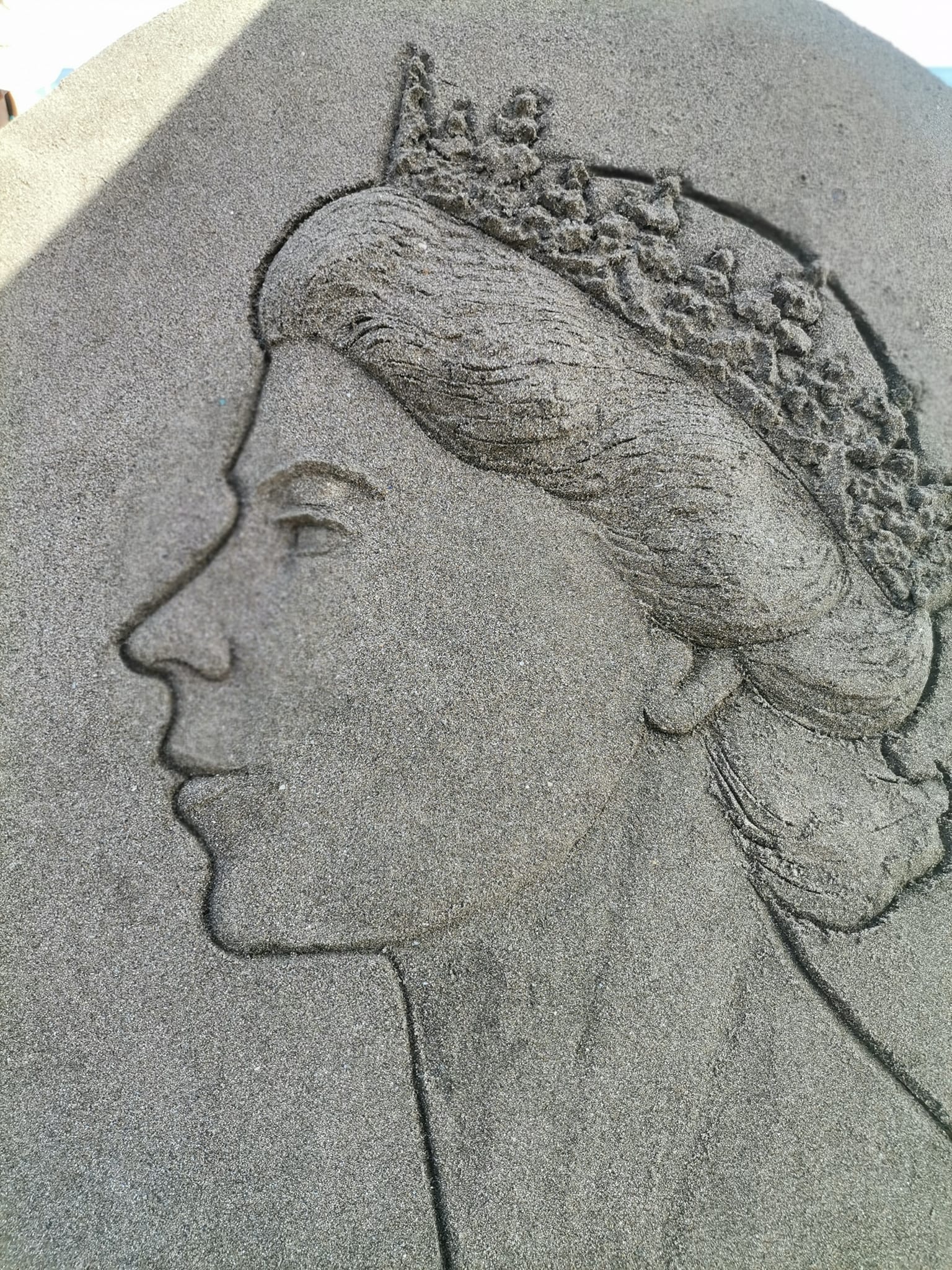 Художниците, номади не за първи път правят образа на Кралицата от пясък. В деня на нейната кончита те показаха своя склуптура от пясък, направена преди години.