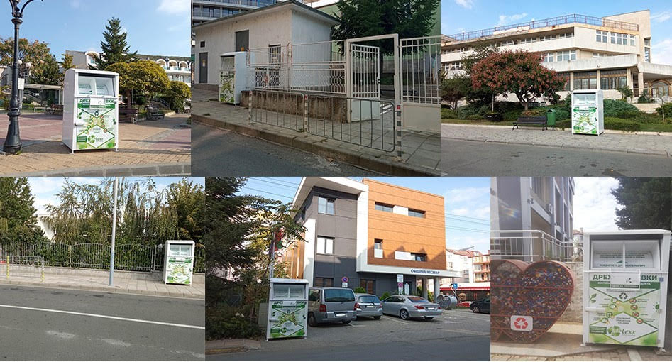Специализирани контейнери за разделно събиране на отпадъци от облекла и текстилни материали има на обществено достъпни места в общината. Съдовете са до ДГ „Калина Малина” (Несебър) и ДГ „Моряче” (Несебър – ж.к. „Черно море”), пред административната сграда на Община Несебър в Слънчев бряг – запад, пред кметствата в Свети Влас, Обзор и Равда.