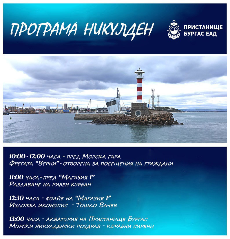 „Пристанище Бургас” ЕАД се включва в празничната програма на общината на 6-ти декември – Никулден. По традиция всяка година жителите и гостите на града честват закрилника на Бургас Св. Николай Чудотворец с редица прояви.