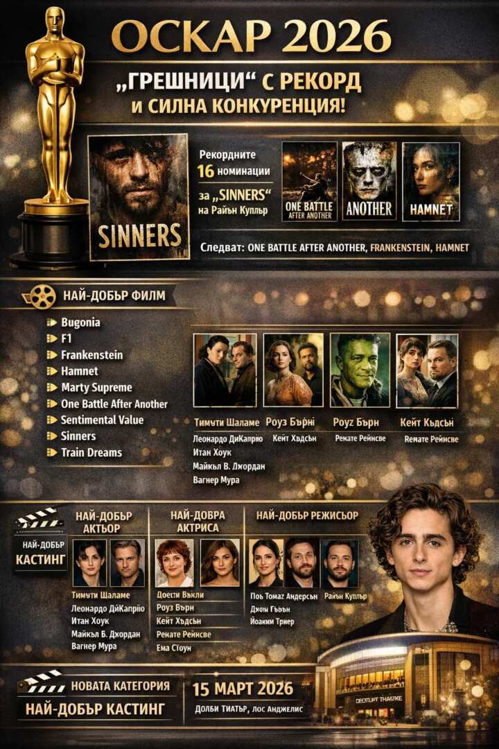 Общата картина показва, че кино индустрията продължава да търси баланс между блокбъстъри, независими продукции и международни творби. Според критици, рекордните номинации за Sinners и силното присъствие на други заглавия ще направят церемонията на 15 март една от най-дискутираните в последните години.