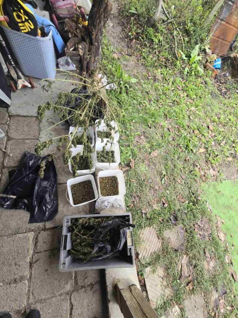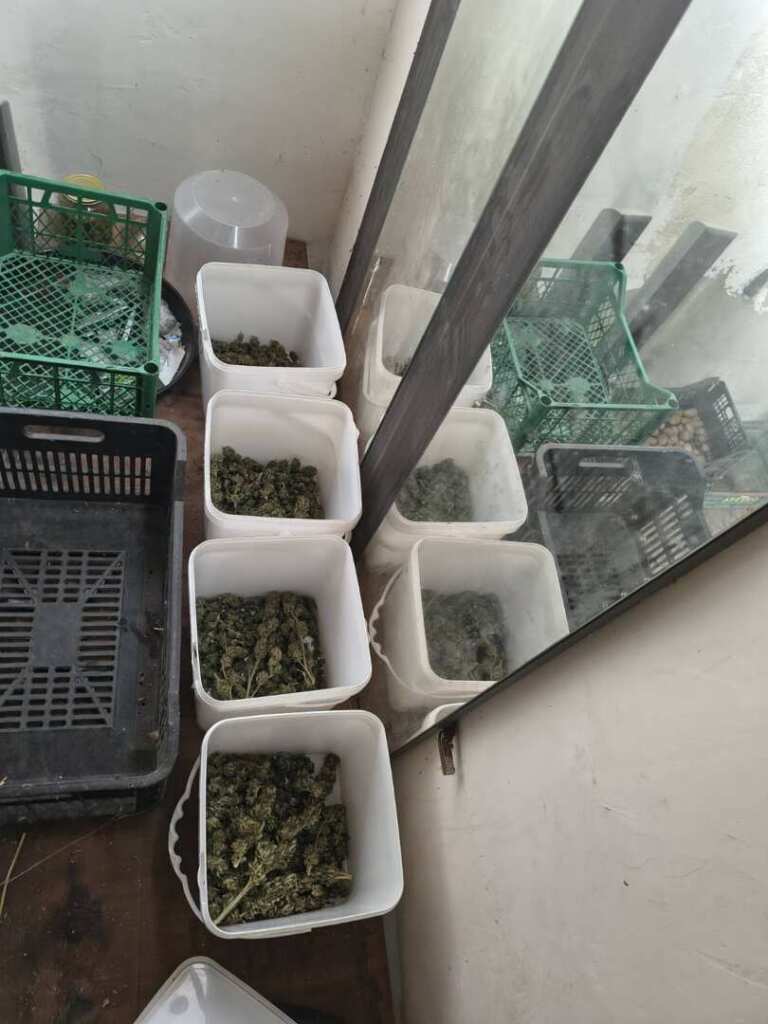 Намерена и иззета е близо два килограма суха зелена тревна маса / марихуана/, съхранявана на различни места / в пластмасови кофи, пластмасова касетка и полиетиленови торби/. Открито е и конопено растение с височина около 160 см.