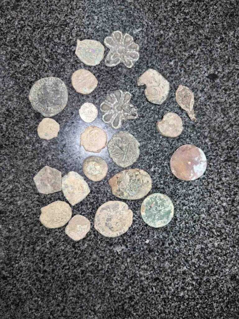 Служители от Районно управление – Айтос извършили проверка в с. Карагеоргиево на л.а. «Тойота Рав 4», с бургаска регистрация, управляван от 46 годишен мъж от селото, като намерили и иззели метал-детектор и метален пръстен. При претърсване в дома на мъжа са открити и иззети : 18 монети различни по вид и размер, като най – малката била 1 см., а най-голямата – 3,5 см., две метални кръгли шайби с дупка по средата, два метални накита, метално украшение, наподобяващо листо, метално копче, с кукичка за захващане от едната страна с изобразена корона, 14 метални предмети, представляващи накити и части от накити с различна форма и големина и др.