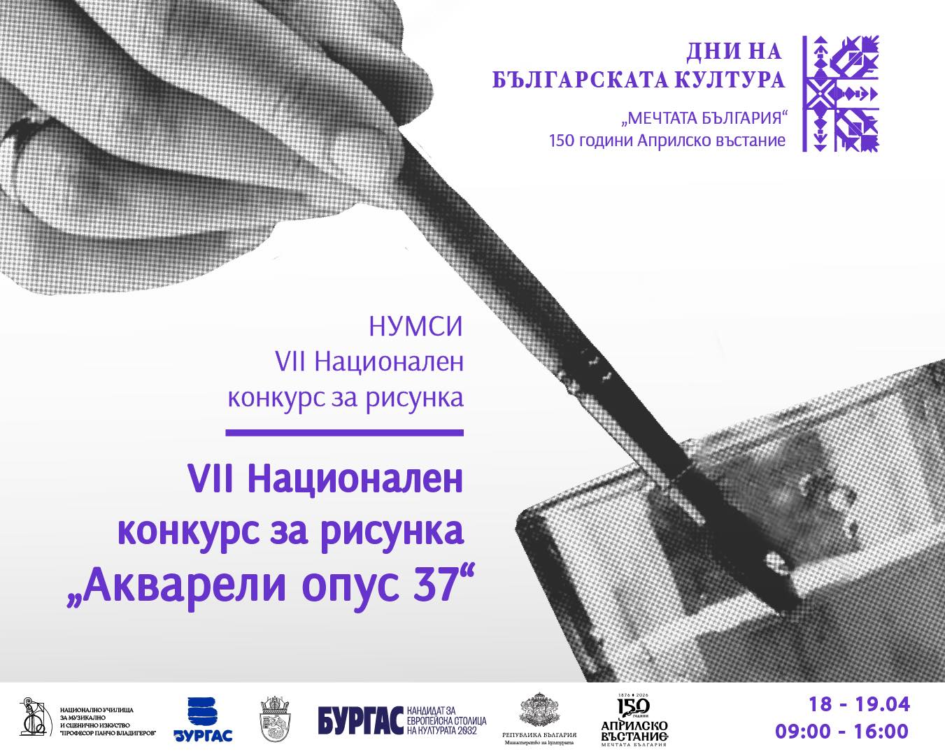 В Националното училище за музикално и сценично изкуство „Проф. Панчо Владигеров“ в Бургас беше открито седмото издание на Националния конкурс за рисунка „Акварели опус 37“.