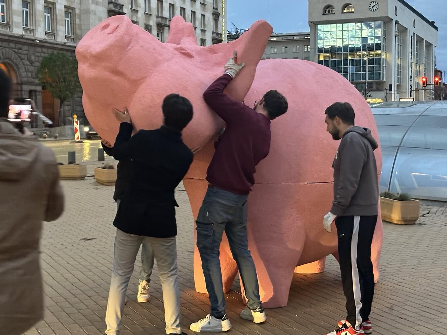 Огромното розово прасе е прочита на ПП за Бюджет 2026 година, който лидерът на партията и депутат от ПП-ДБ Асен Василев призова да не бъде приеман, защото не е преминал през одобрението на социалните партньори в Тристранния съвет. Според Василев 600 лева на година ще бъдат взети от всеки работещ българин.