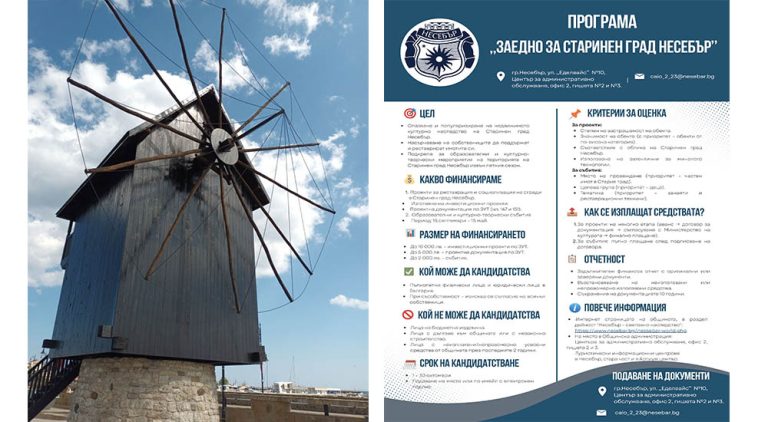 От 1 октомври 2025 г. Община Несебър стартира прием на проектни предложения по програмата „Заедно за Старинен град Несебър“ към Общински фонд „Култура“. Инициативата се финансира изцяло със собствени средства на общината и има за цел да подпомогне опазването и популяризирането на уникалното културно наследство на Старинен Несебър.