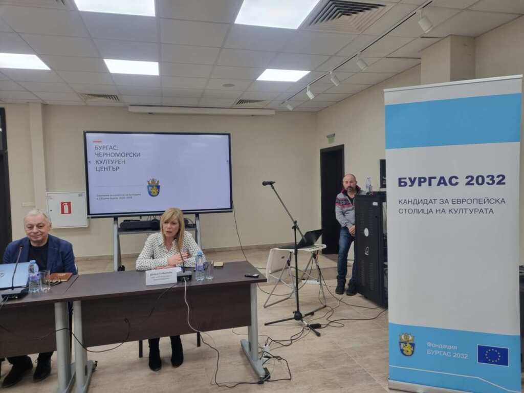 Общественото обсъждане на проекта за Стратегия за развитие на културата на Бургас за периода 2026–2035 г. се проведе тази вечер в Културен център „Морско казино“. В срещата участваха представители на културните институции в града, екипът на Фондация „Бургас 2032“, журналисти и общественици.