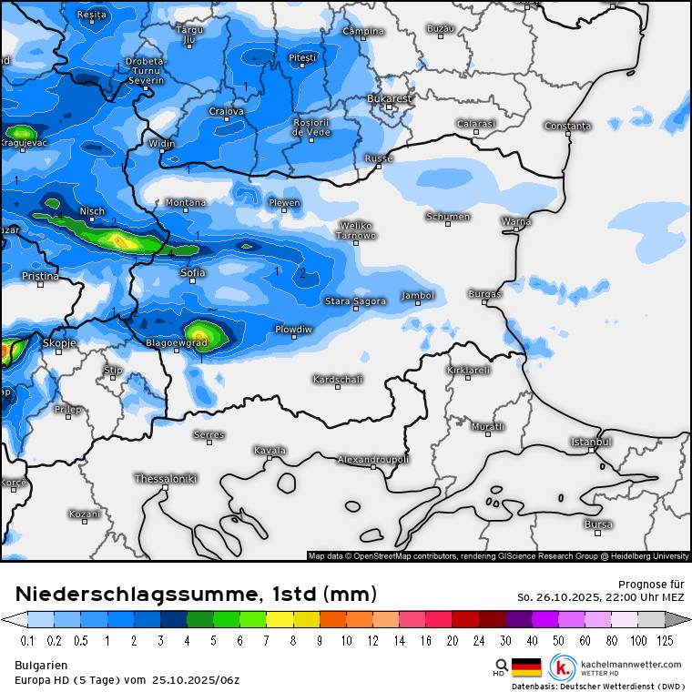 В първите 13 карти е почасова разбивка на валежите през денонощието, като още до сутринта ще завали в западните райони, а през деня – над централните и в част от североизточните, но ще е предимно слабо.