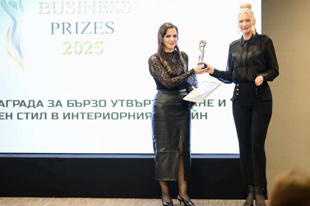 Кореспонденът на телевизия България он Ер и главен редактор на сайта zonaburgas.bg Стиляна Георгиева връчи отличие на Anita Boshnakova Design Studio за бързо утвърждаване и отличителен стил в интериорния дизайн.