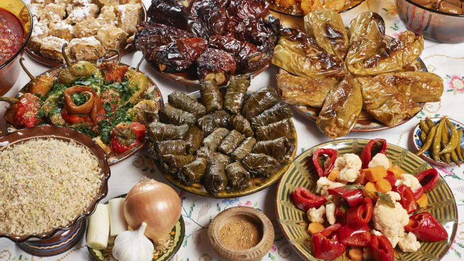 Трапезата традиционно включва постни ястия като боб, пълнени чушки, жито, сърми, ошав, мед и обредна питка с пара. Вярва се, че всяко ястие носи определена символика, свързана със здраве, плодородие, благополучие и дълголетие.